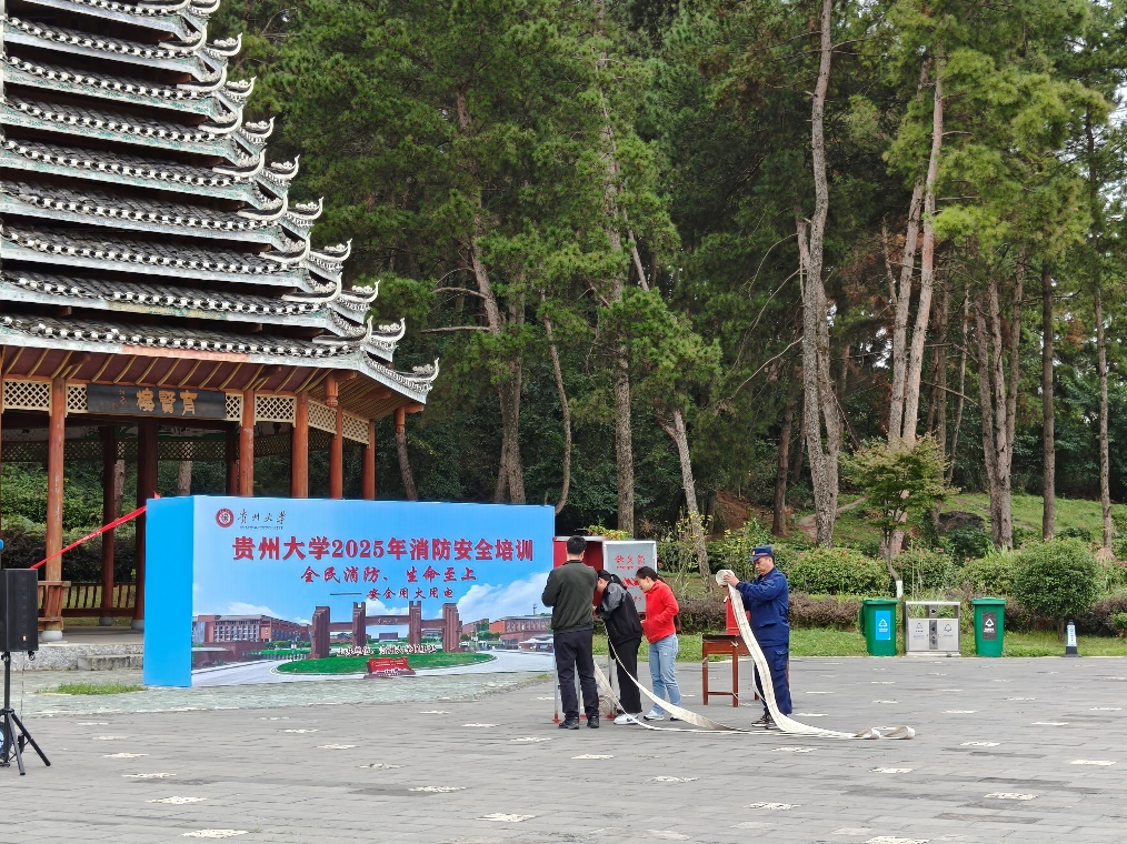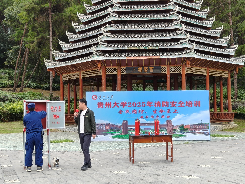 2025年10月22日至23日,贵州大学保卫处于育贤广场组织开展了以“全民消防·生命至上”为主题的消防安全培训。保卫处消防科及微型消防站全体人员全程参与活动组织与现场保障工作,全校23个学院的师生分批次参加培训,达成了应训人员的全覆盖。